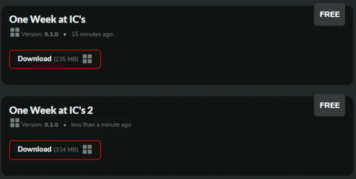 Перезалил два игры One Week at IC's и вторую часть игры