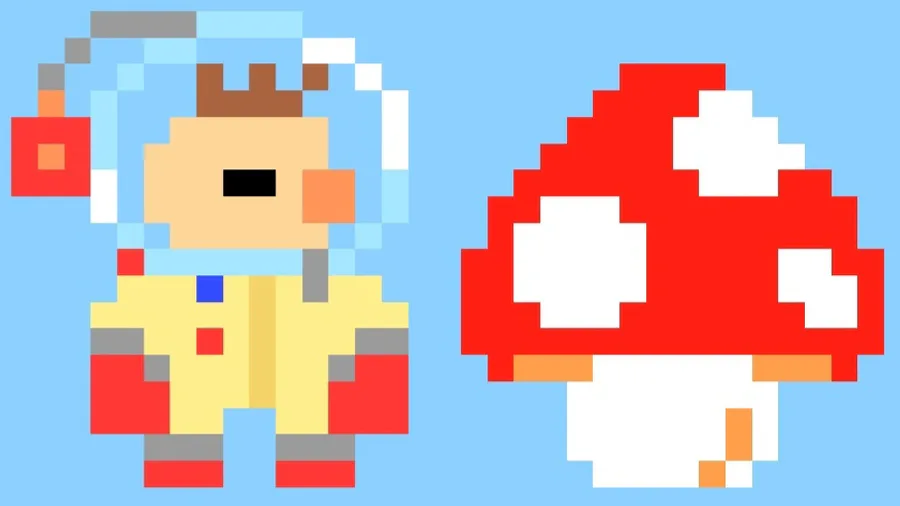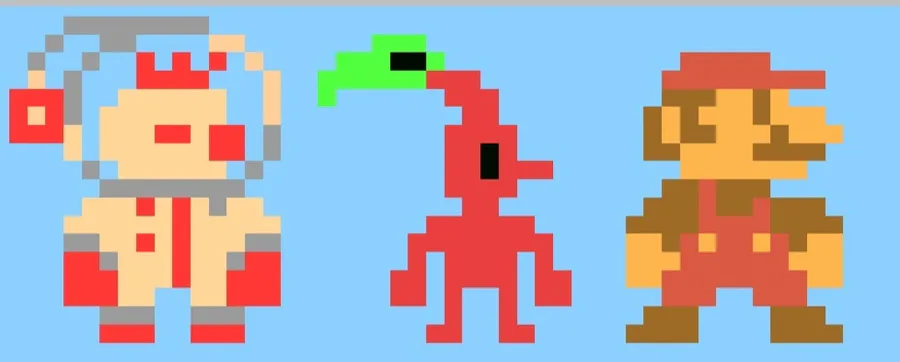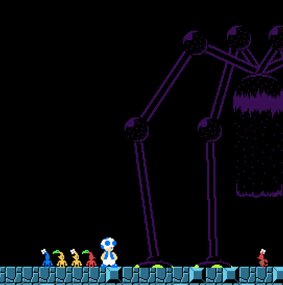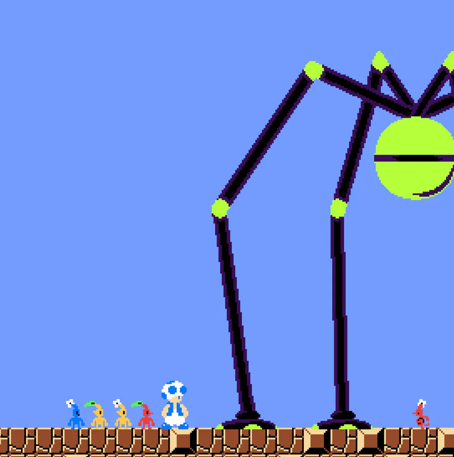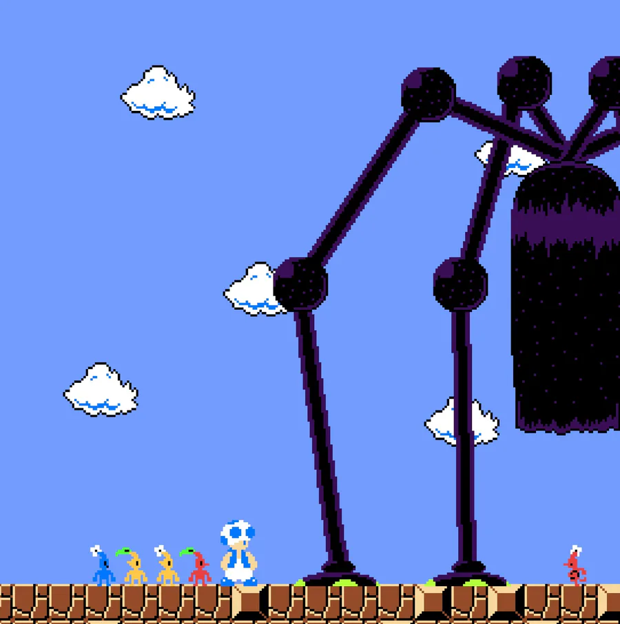 Olimar and pikmin in the smb1 style