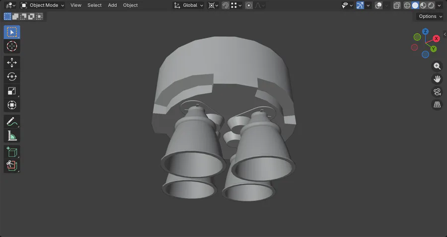 The first and second image are of a possible crewed vehicle that's Soyuz like (the diameter of the descent module is 2.4 meters and the bottom of the service module is 2.8 meters). All the other stuff like solar panels and docking stuff will be added later when I import it into blender. The third is a image of what the bottom of the first stage could look like with it's 4 Ukko alpha engines (the diameter of the first stage is 2.6 meters BTW and part of the engines will be covered in the final design), the fourth is the second stage (1.6 meters wide) with 1 Pohjala alpha engine and the fifth is of a 2.6 meter wide second stage with 2 Pohjala alpha engine. And the Rocket with the 1.6 meter will have a S1 at the end of the name (So like Finlandia alpha S1) and if it's the 2.6 meter one it'll have S2. And then when booster are added on the S2 it'll be S2-n (with n being the number of boosters with 6 being the max). The S2 and S2-n will be used for bigger payloads and the crewed vehicle. Obviously the first launch of a Finlandia alpha will use the S1 because a S2 for the first flight is overkill.
