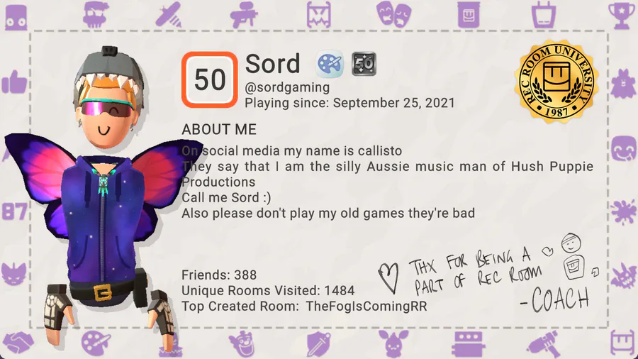 My Rec Room report card, Imma miss this game