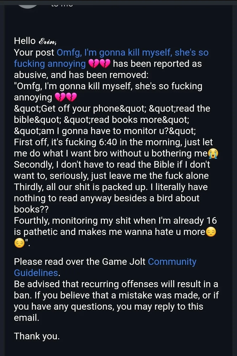 Dumb vent but I feel like crying cause of this but I have to get ready for school 💔💔