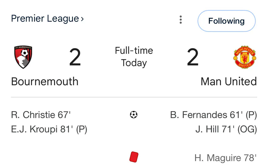 Manchester United against AFC Bournemouth Today, Congratulations Bruno Fernandes on his goal.