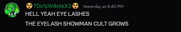 being in the showman's discord server is like being in the back-alley way of an arby's on a Saturday. you'll always see old men kissing.