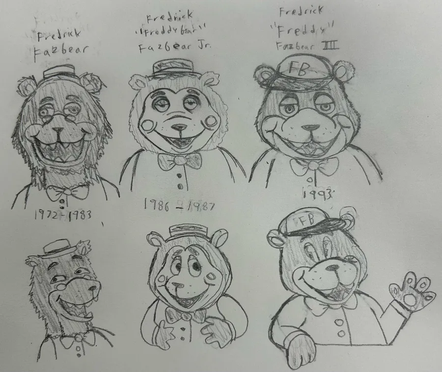 New designs for the Fazbear family tree, from my FNAF take