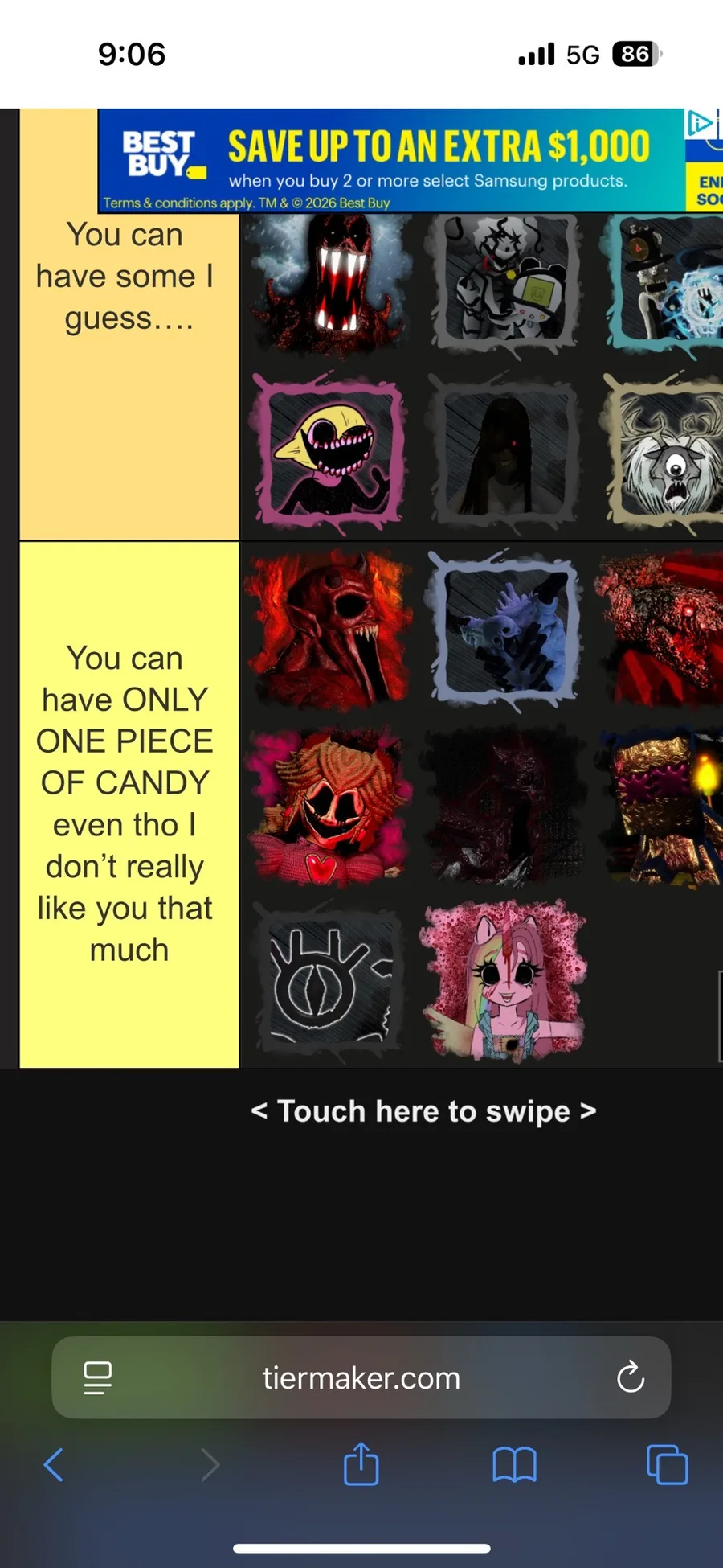 Pc2 monster tier list based if I allow them to have my candies (Random tier list sorry I got bored)