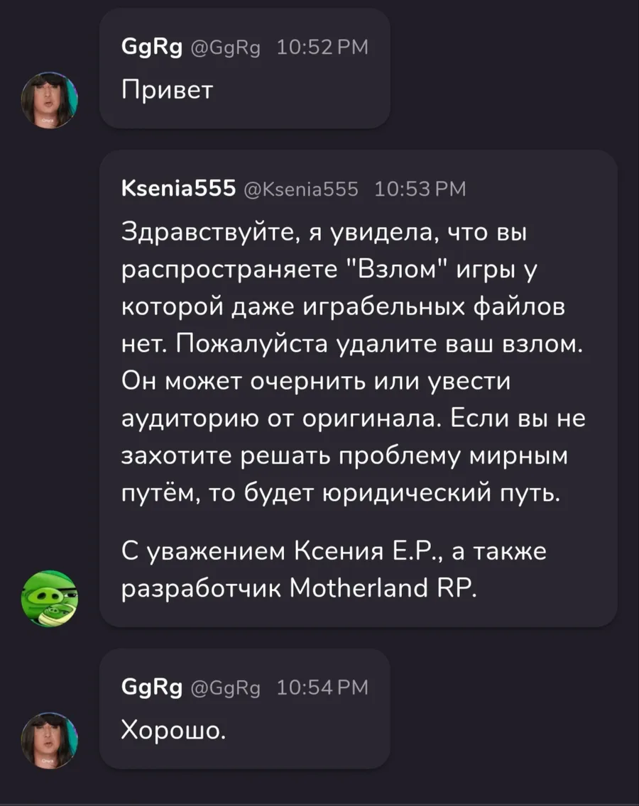 Мне ответила разработчик Motherland RP.