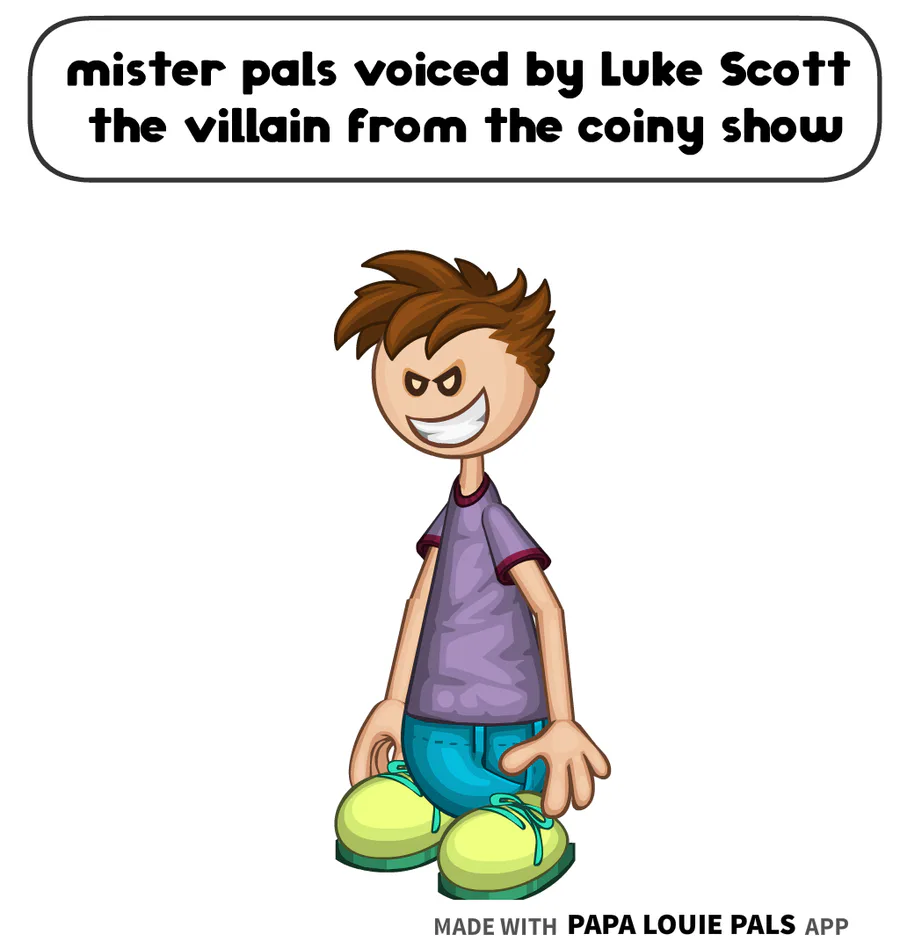mister pals is voiced by Luke Scott the villain from the coiny show