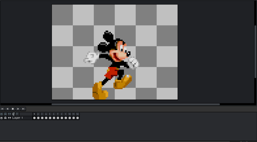 Mickey mouse walking animation used with aseprite.