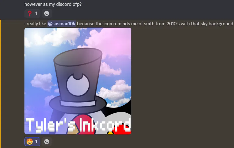 Having my own art be tylers new discord profile picture was not on my list for 2026 but here we are. i could have never seen this happening in a hundred miles but im incredibly honored. Thanks tyler for using my art!