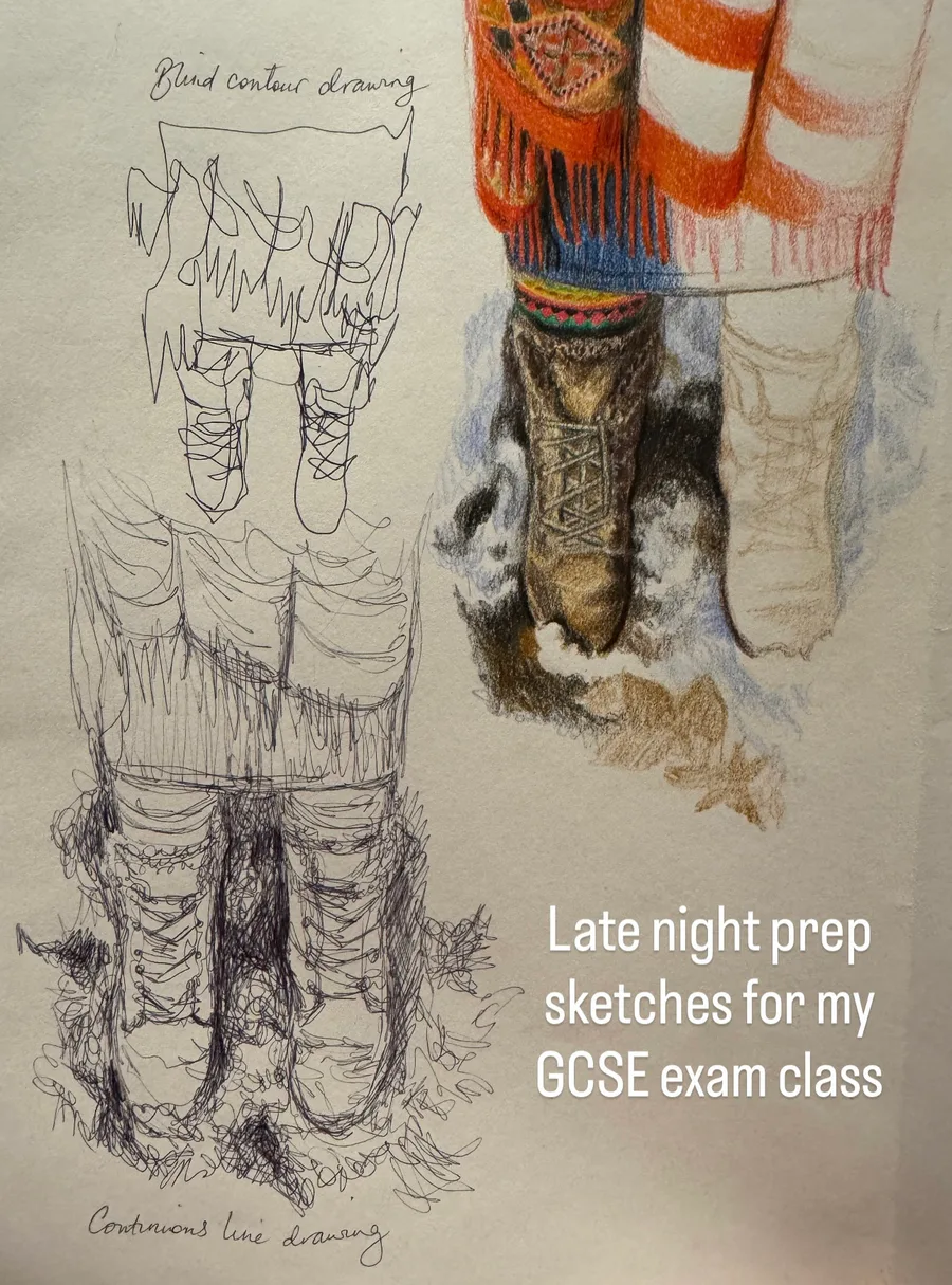 Prep sketches for my GCSE art class as examples for them to follow.