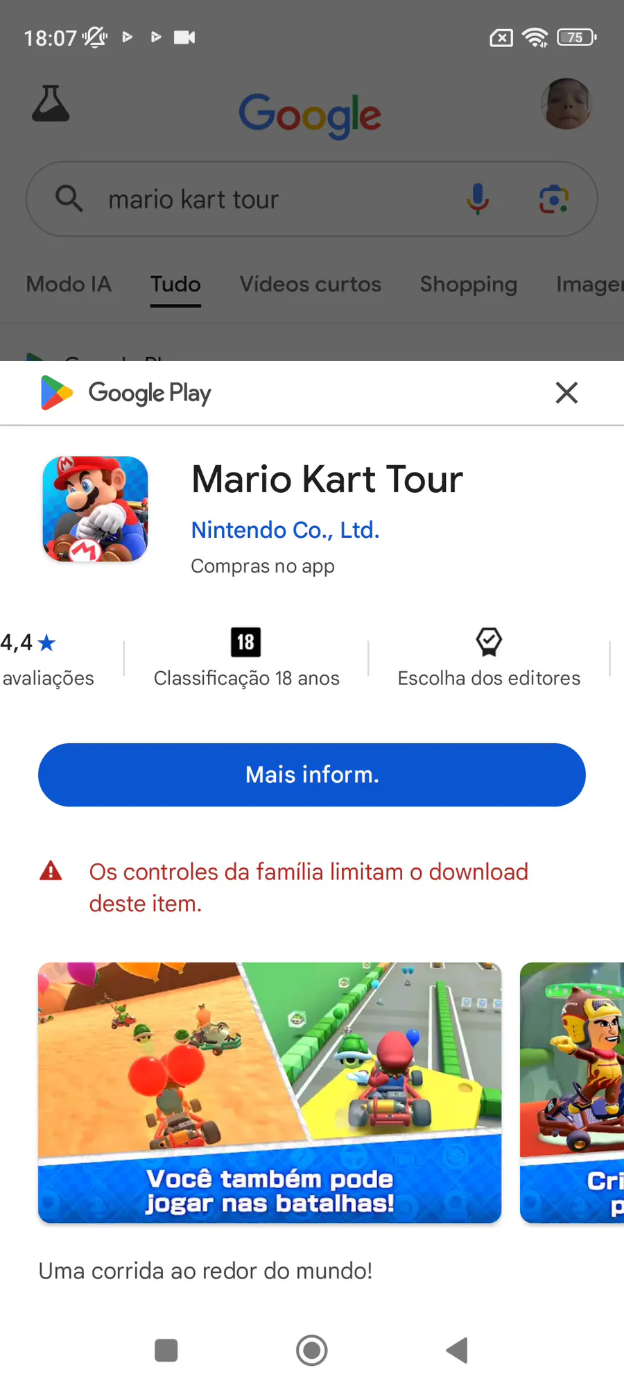 Brawl stars é Mario kart tour é pra 18 anos