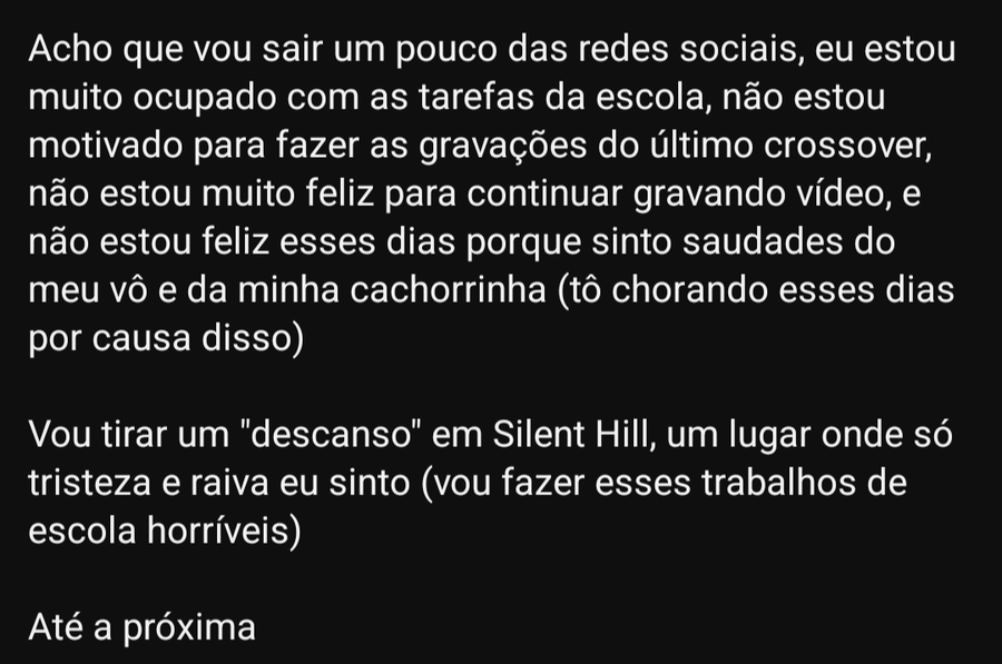 Post in English: Guys, on the 30th there will be one more video at 5:00 pm and it will be a sad video