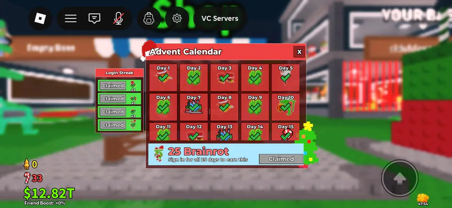 My brainrots i got on the new steal a brianrot Christmas update