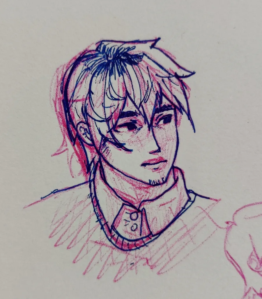 I kept making him look too feminine whoops, I think the second drawing looks more like a man tho, I hope it isn't too unlike the character