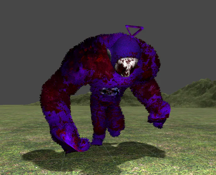 Oh no..laa laa is here, Tinky Winky ate her eyes, she can't see us BUT CAN HEAR US... and we won't wait for her to evolve so she can see again...