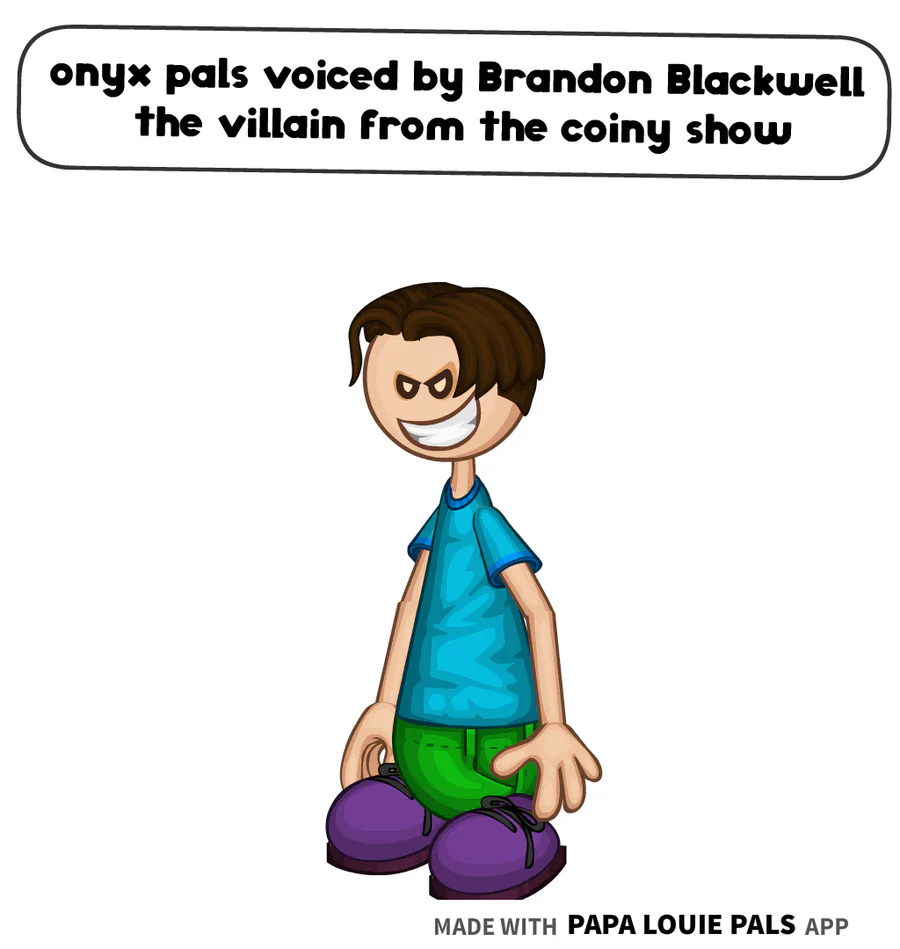 onyx pals is voiced by Brandon Blackwell the villain from the coiny show