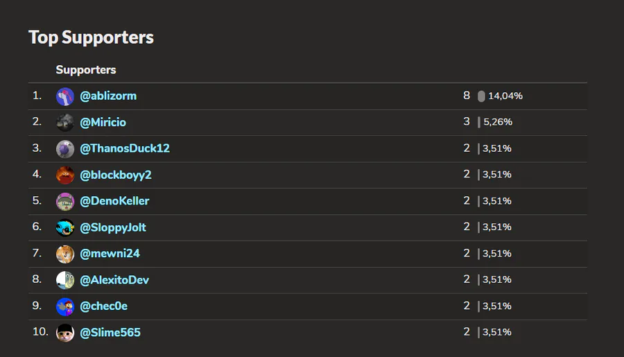 Also top supporters of the last month