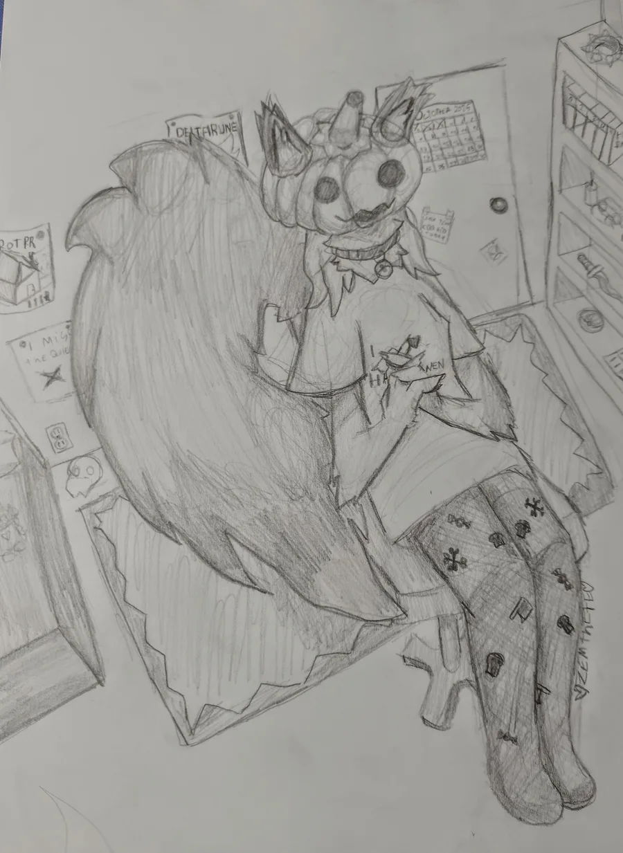 I drew a lil nerd cuz it's spooktober :3 Also the background has a bunch of refrences in it so chu can like look for all of em if you feel like it!