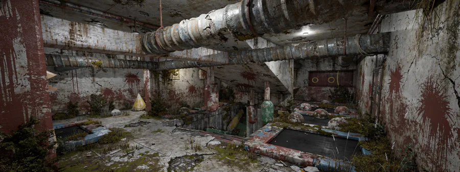 R: The evolution of visuals. Experiment with AI. Task: Turn the "cute children's center" into an "abandoned trampoline hell." This sets the game's style. Technically possible? Yes. Challenging? Absolutely. But now I see the direction. What do you think?