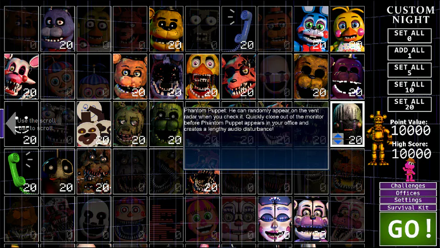 Radiactive Foxy: He will appear in the Pirate Cove, he will made the toxicity go further and further, if he stays too long on the pirate cove, you will die. Look at him to prevent it.