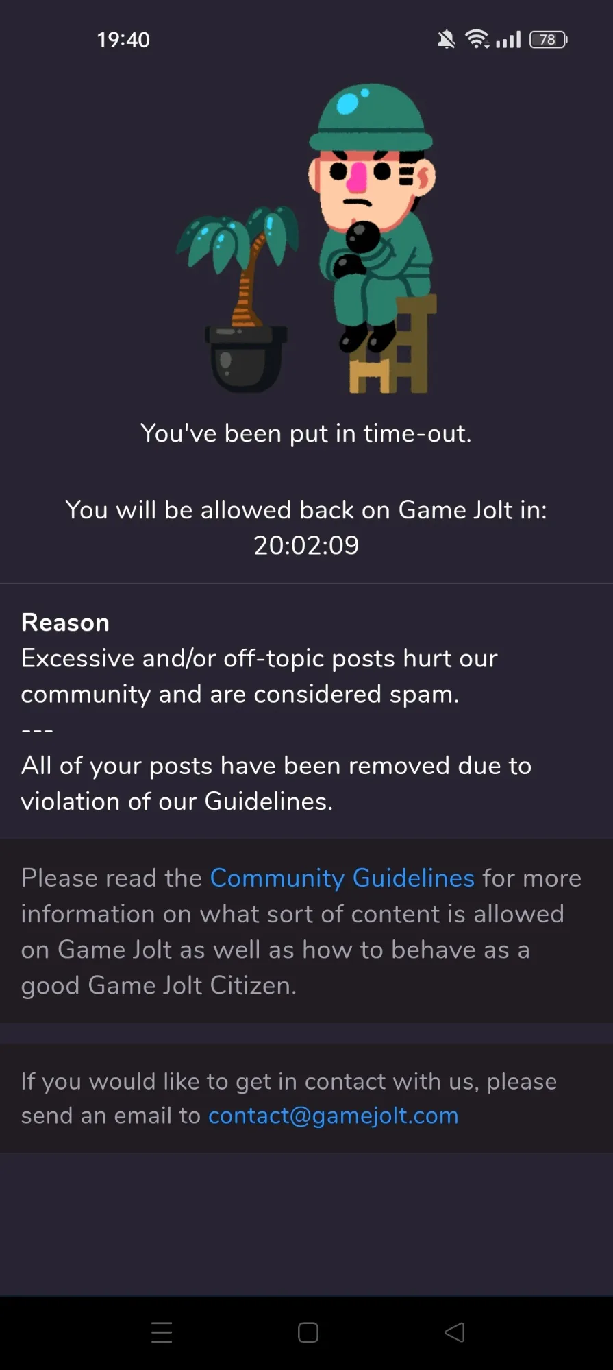 Hey Guys I just have it announced I just officially got Time Out! off-topic posts hurt our community For Reason After results my posts are completely Deleted Forever 😠But I am Back 😎