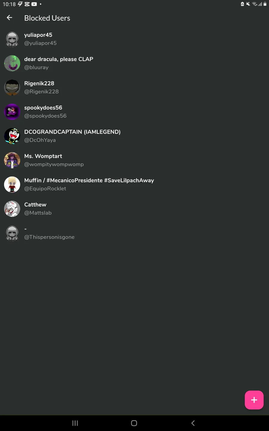 Heres my block list for no reason each of these ppl can go fuck themselves for being shitheads