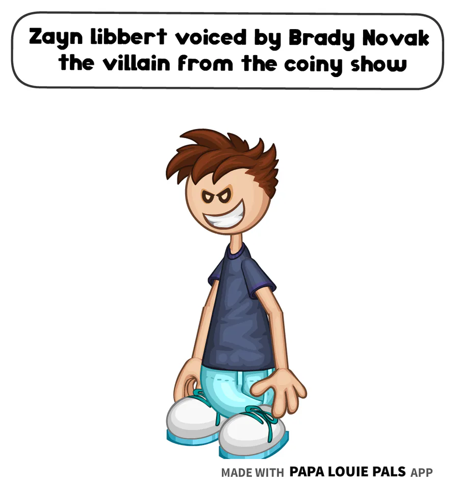 Zayn libbert is voiced by Brady Novak the villain from the coiny show