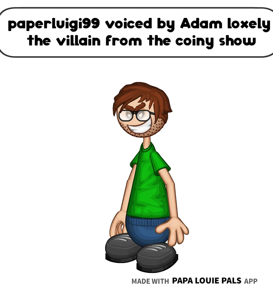 paperluigi99 is voiced by Adam loxely the villain from the coiny show