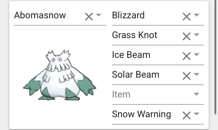 Cyan’s Pokemon team! She uses Ice Pokémon.