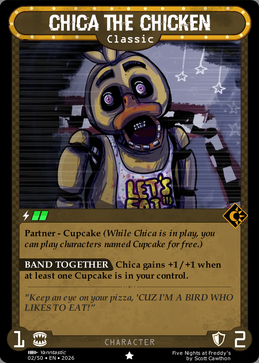 I've spent weeks on redesign for this ruleset, trying to find what fits best to FNAF. The final design I set on has the simple goal of defeating all other players with rules similar to Magic and Lorcana.