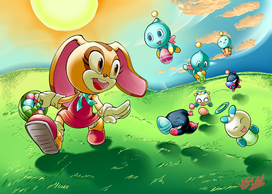 I managed to finish this one Easter drawing... 2 days after the fact. I really need to start planning these better but enjoy Cream having a happy egg hunt with these chao #EasterEggHunt #CreamtheRabbit #sonicthehedgehogfanart