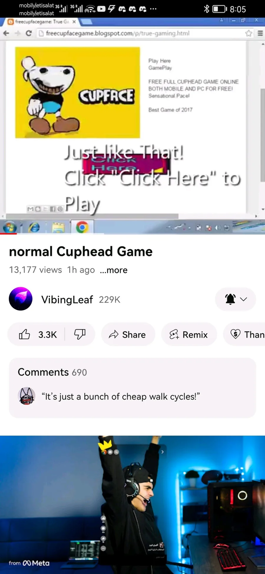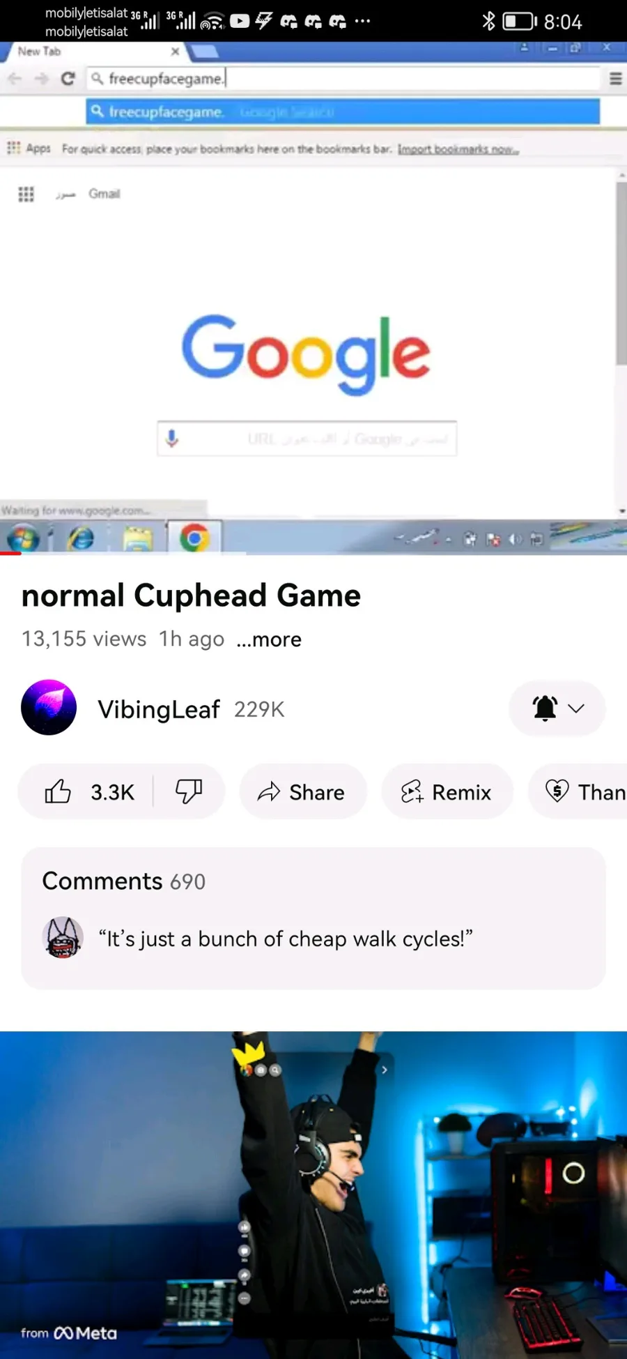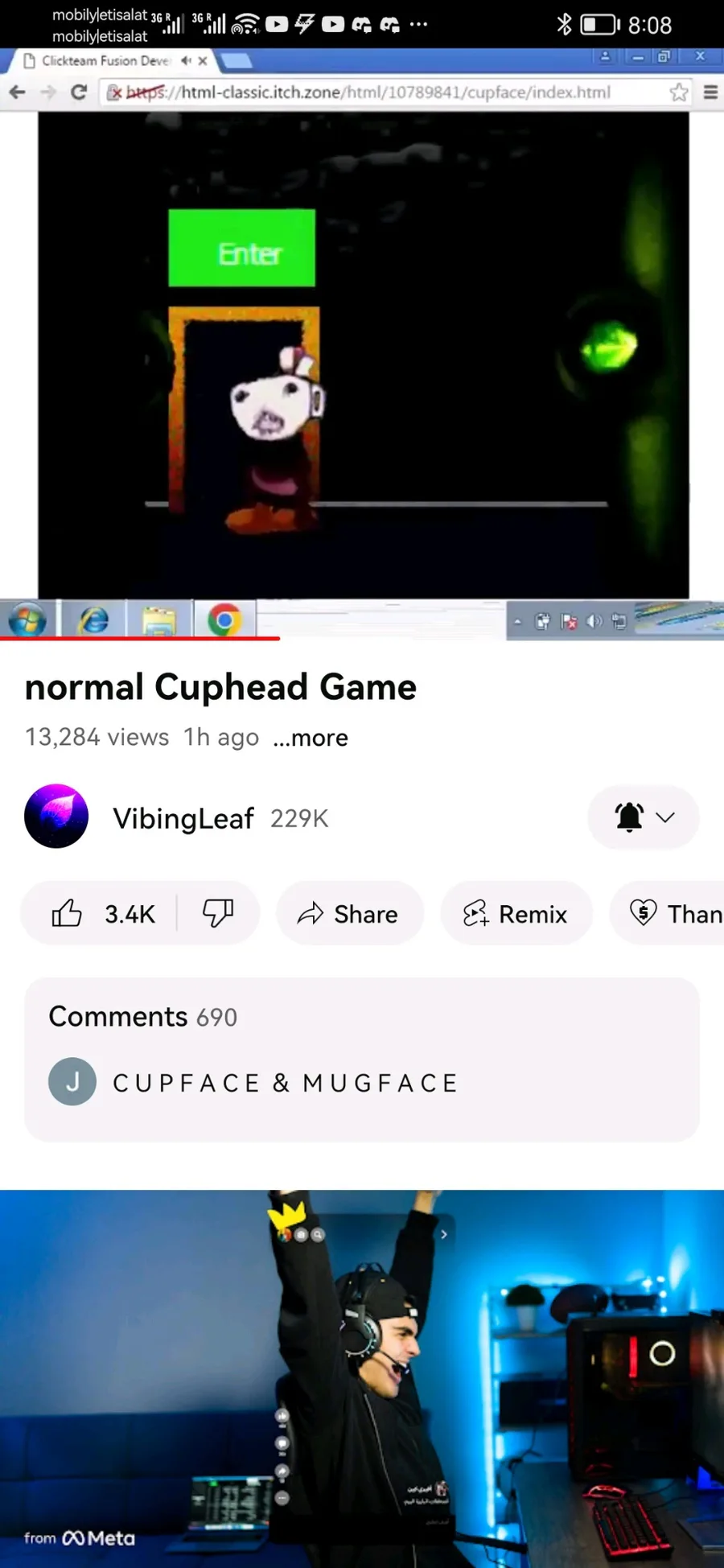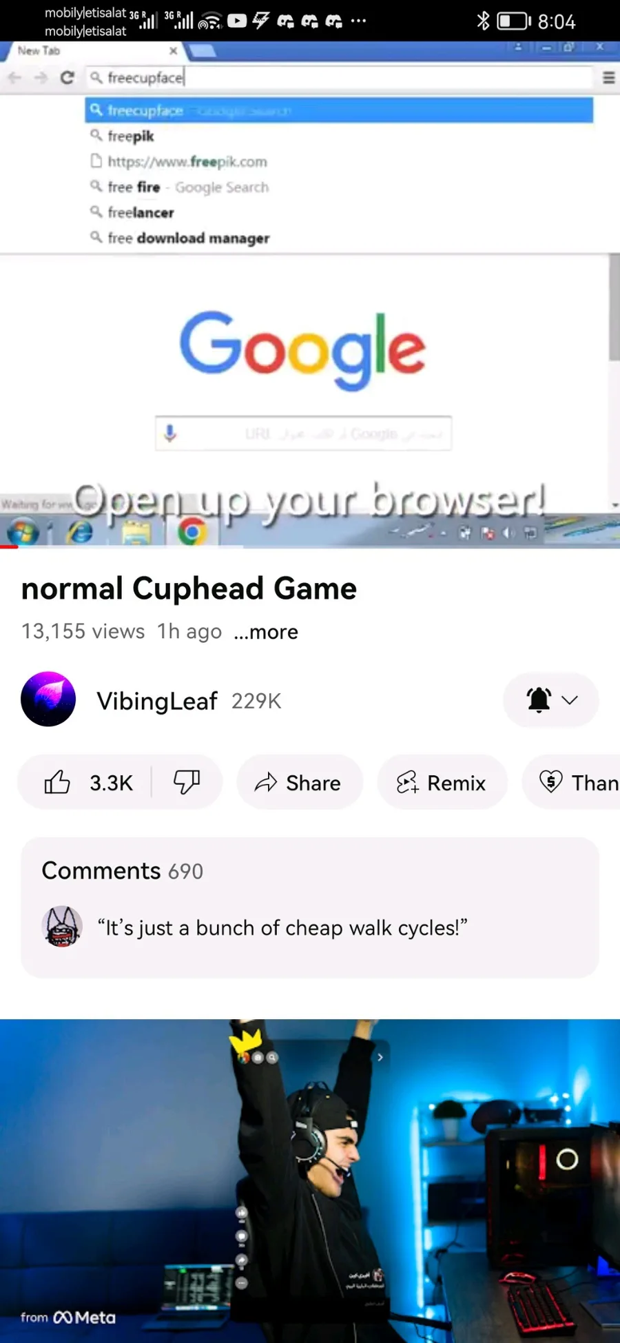 Screenshots of the cup face video by vibing leaf before it was taken down