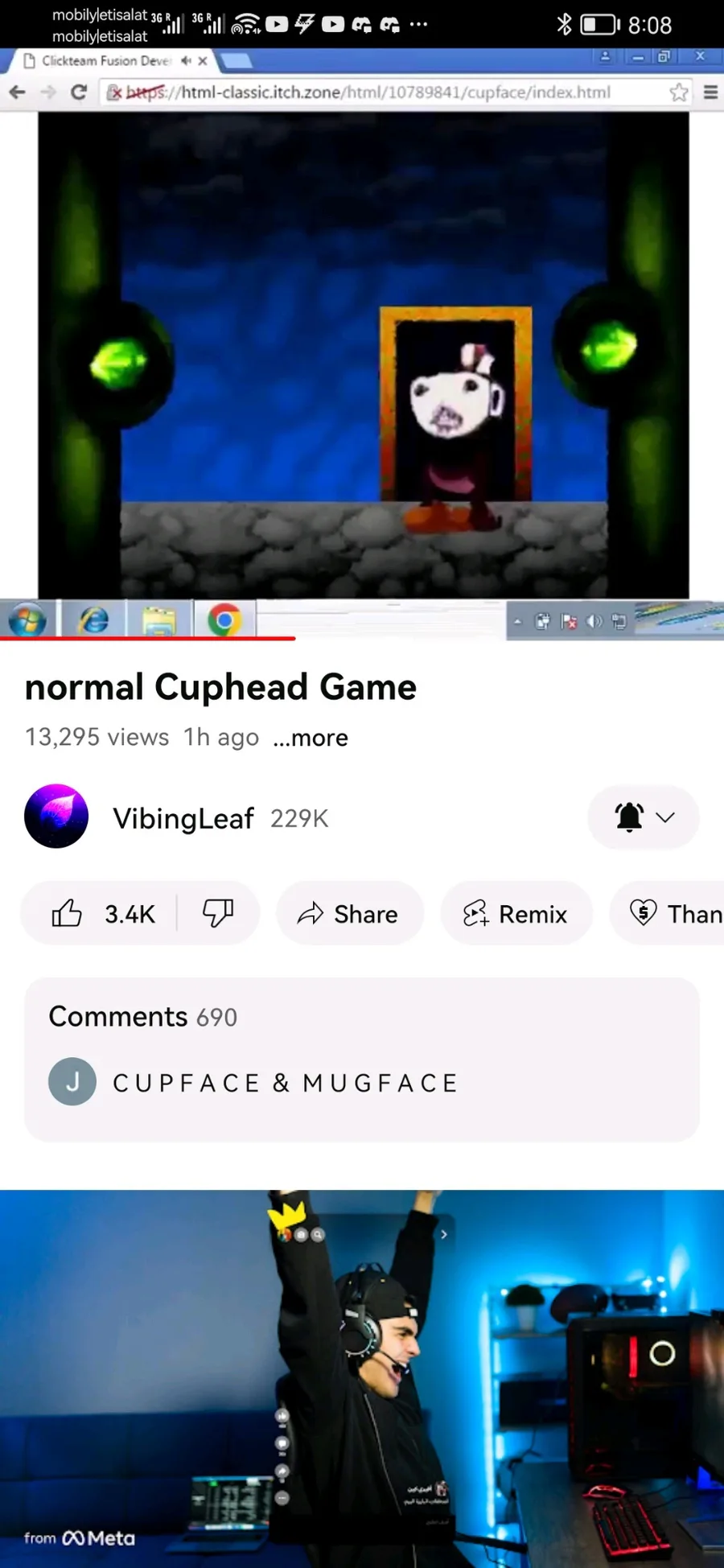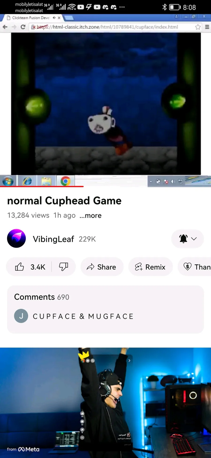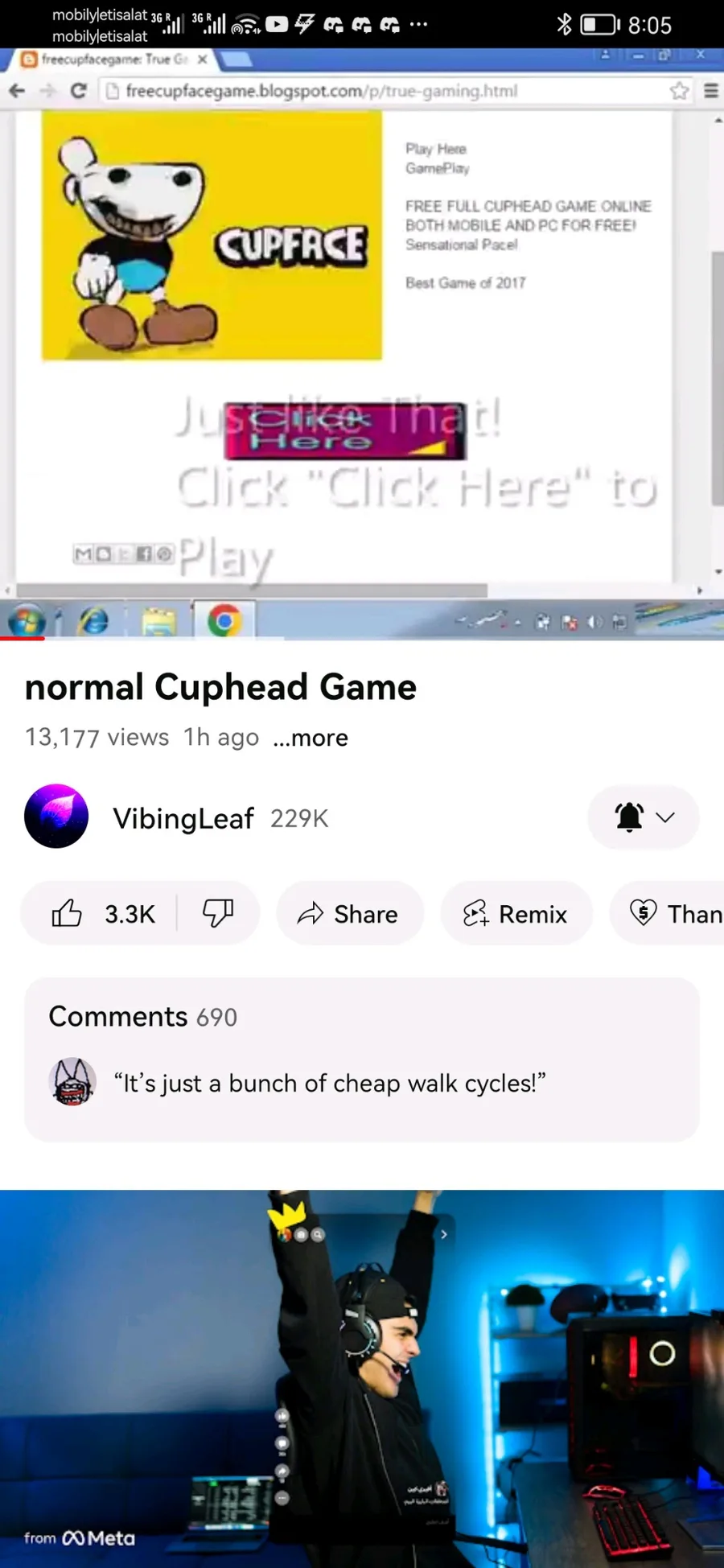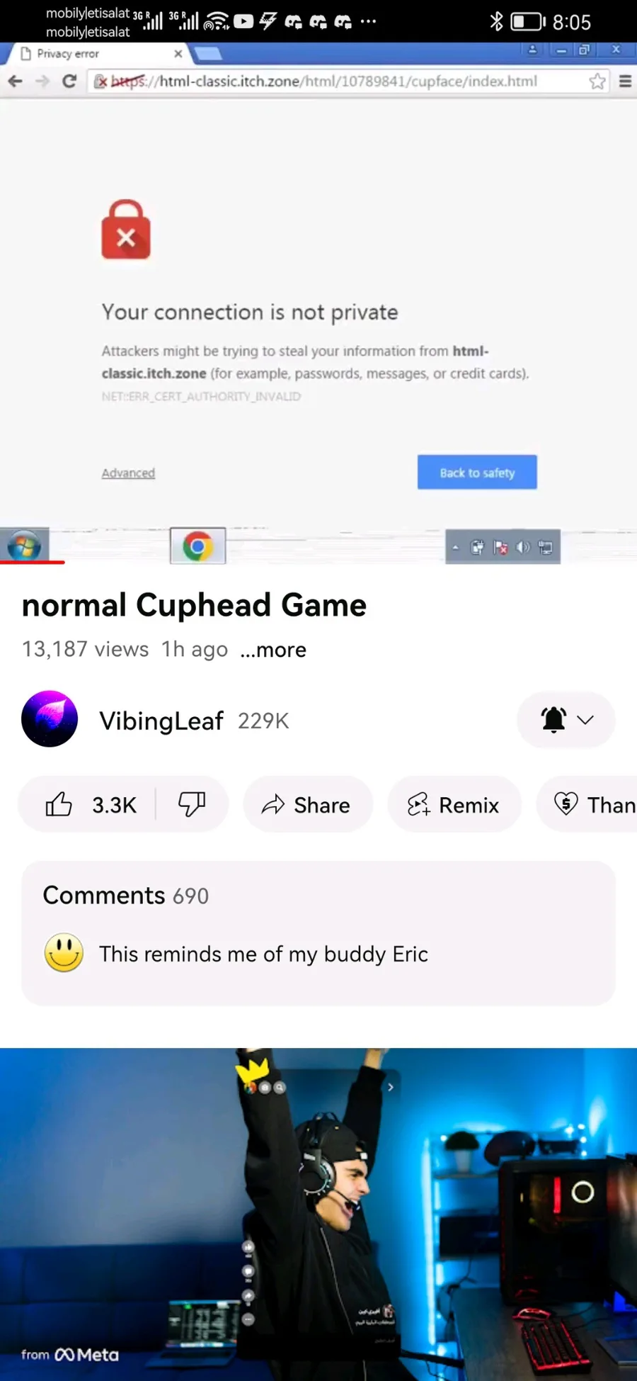 Screenshots of the cup face video by vibing leaf before it was taken down