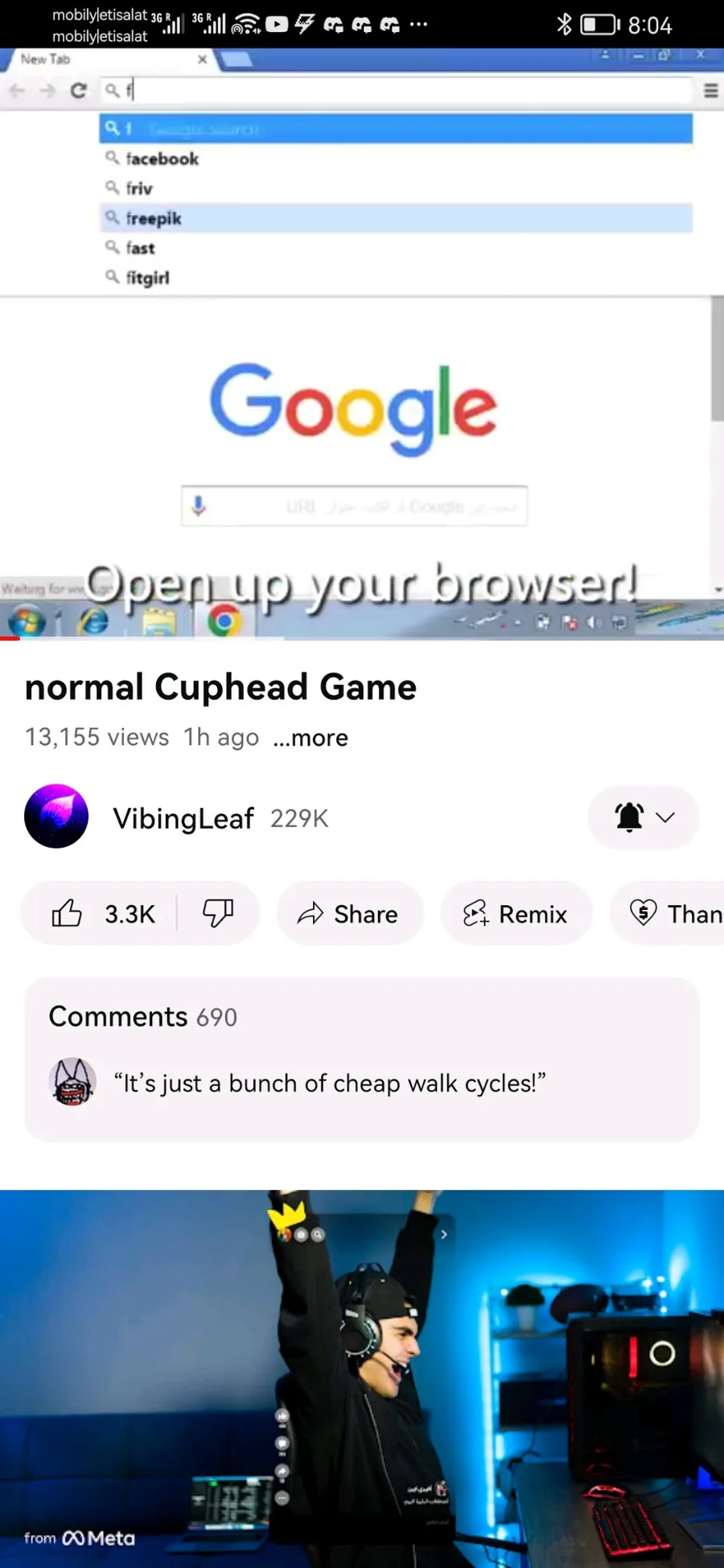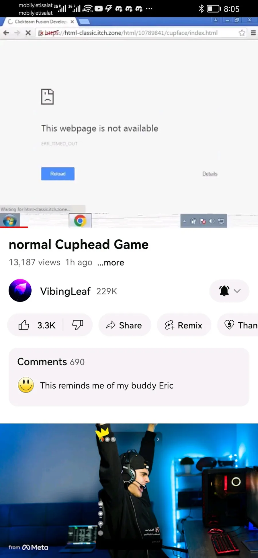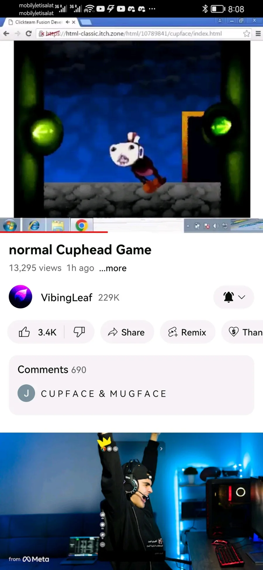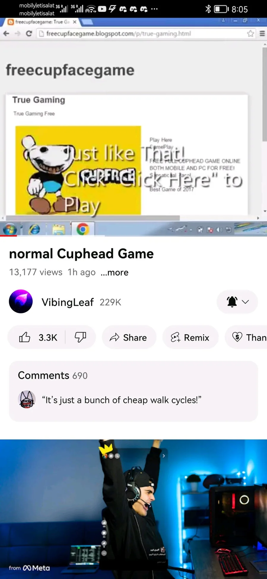 Screenshots of the cup face video by vibing leaf before it was taken down