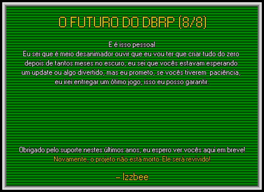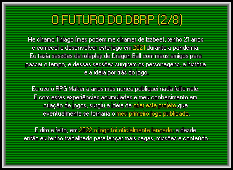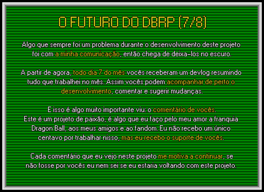 Eu gostaria de prestar meus sentimentos ao Akira Toriyama. Ele influenciou minha vida como gamedev e artista de uma forma que eu nem consigo descrever, afinal, esse projeto obviamente só existe graças a ele. Honraremos seu legado, descanse em paz mestre!