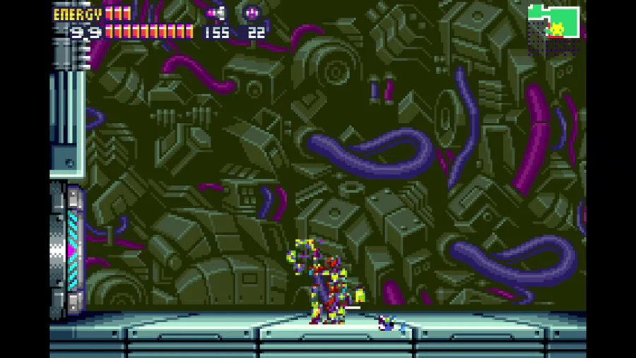At getting the gravity suit I softlocked myself by pressing left and then trying rewind to save the run resulted in this-