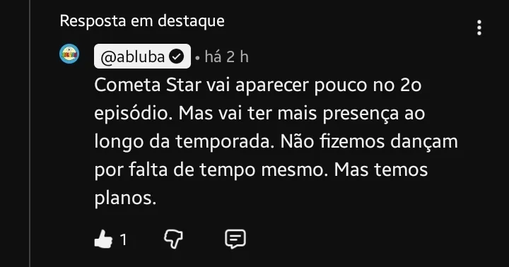 Perguntei ao Abluba sobre ter mais coisa do Cometa Star e eles me responderam hoje