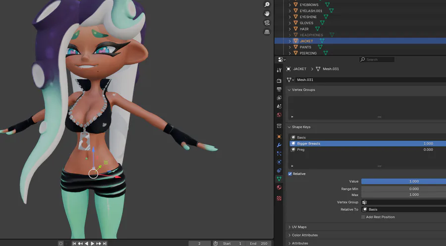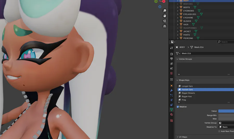 I didn't have a screenshot of what I'm doing, but I am currently working on her in Unity and my GOD am I super mad at the stupid bone mapping bullshit. I'm gonna have to go back in and reparent some bones! FUN! (I hate the DEF, ORG bones...)