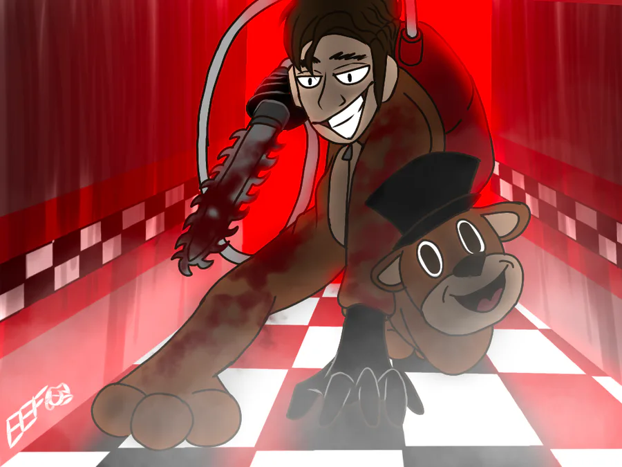 !!!!BLOOD WARNING!!!! "HELLO INTERNET. AND WELCOME TO DEATH THEORY." Amazing MadPat art by one of my friends over on Discord! (I got permission to post this from them!) If this isn't exactly FNaF themed enough to be sent here, then I apologize in advance.