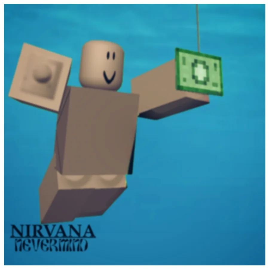 The cover of Nirvana's Nevermind album, but in Roblox.