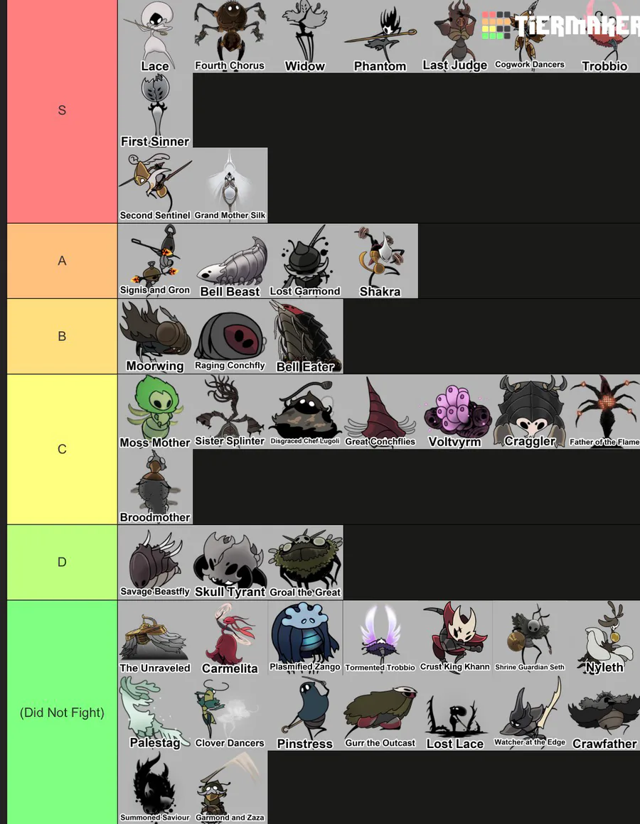 Updated Silksong boss tier list