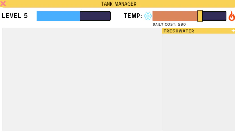 🧪Testing a new feature, tank temps! Fish now have a desired temp range. This is user controlled but a) the more extreme the more expensive the daily bill is, and b) it will slowly drift to the environmental neutral (affected by season and weather).