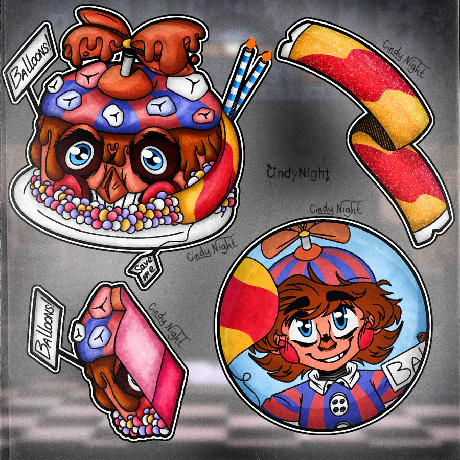 Good day! Third teaser for fnaf univ/fanv with cake designs for 'Balloon Boy' with two types! Also shown are the filling inside the cake and the wrapper design. 12/???