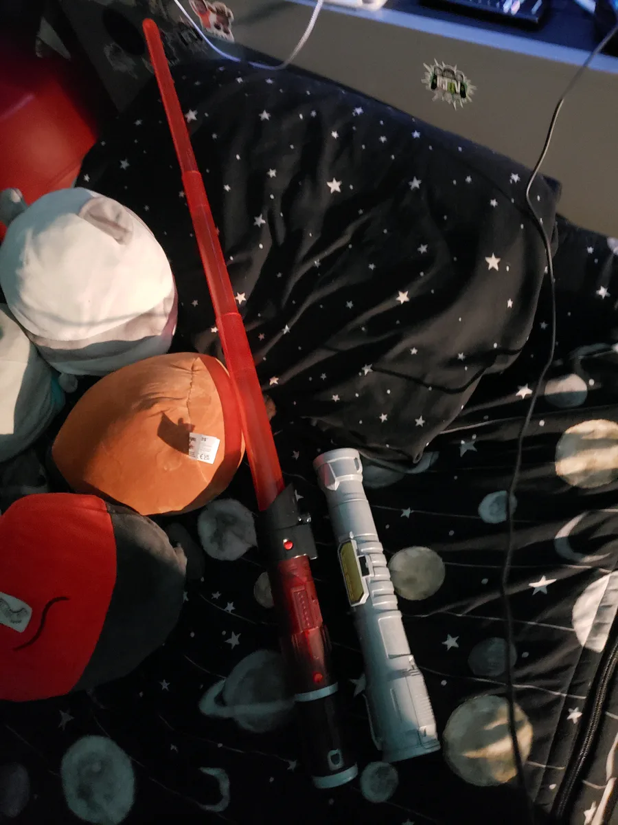 I got another power saber and it still works after like 3 days and i also got a darth vader lightsaber i might make some some content later showing these things in action debating wether or not i should do a voice reveal then the main reason i havent yet