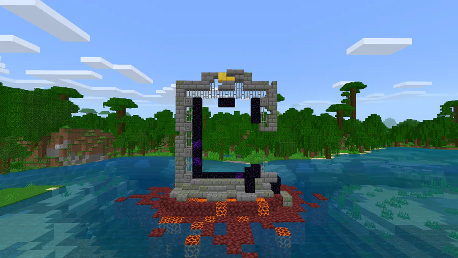 While I was walking in the woods ı found a nether portal world seed is under here. Note portal is near the starting place , look around the water.