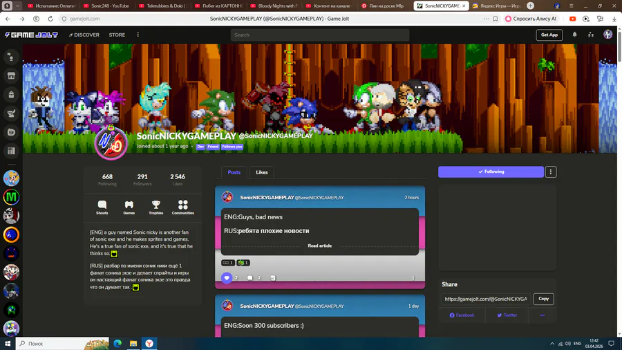 Подписивайтесь на его канал @SonicNICKYGAMEPLAY ![]()