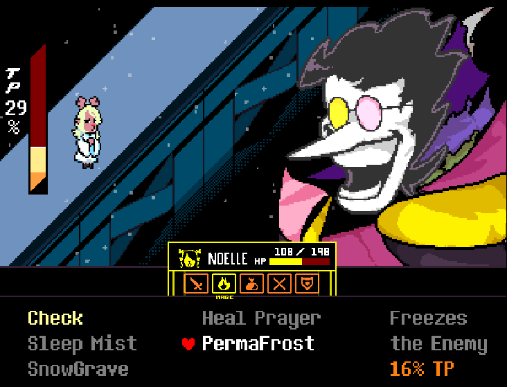 As of right now, I have plans for the game, but, here' a hint too how Noelle is, in this game (note: every character I show will have a fact about them) Noelle remembers nothing from the dark worlds after Kris dies.