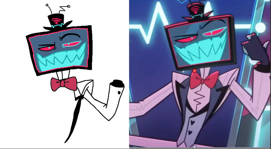 and then the antenna of the tv and his arms kind of look like an X