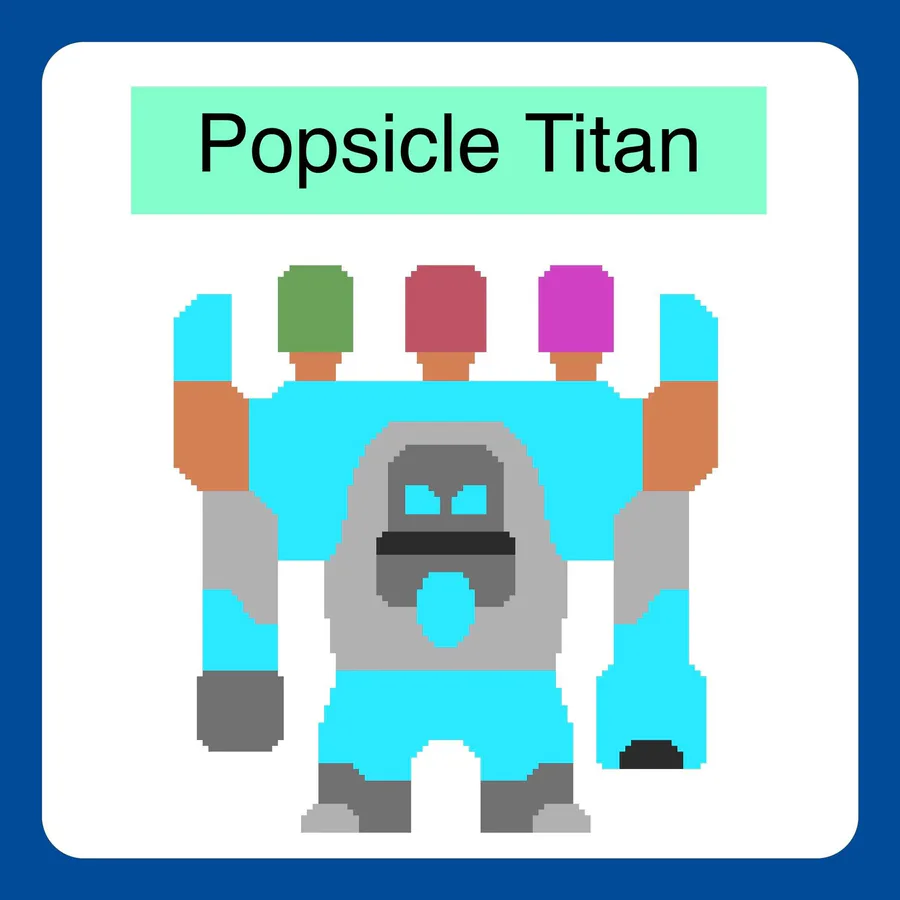 The Popsicle Titan is a Giant Snowborn Golem Construct Creature like a Yeti but they are a Sour Characters of Ice Candy elements