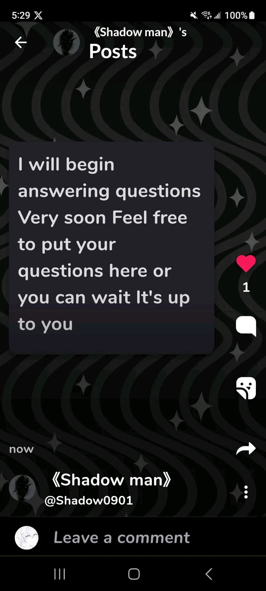 WOWWOWWOWOW Shadow man will be answering questions OMG I can't wait Make sure to give him some questions, guys He's the best father I could ever ask for